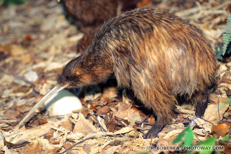 Mais le véritable emblème du pays, c'est le Kiwi, un drôle d'oiseau noctambule au long bec, de la taille d'une poule.