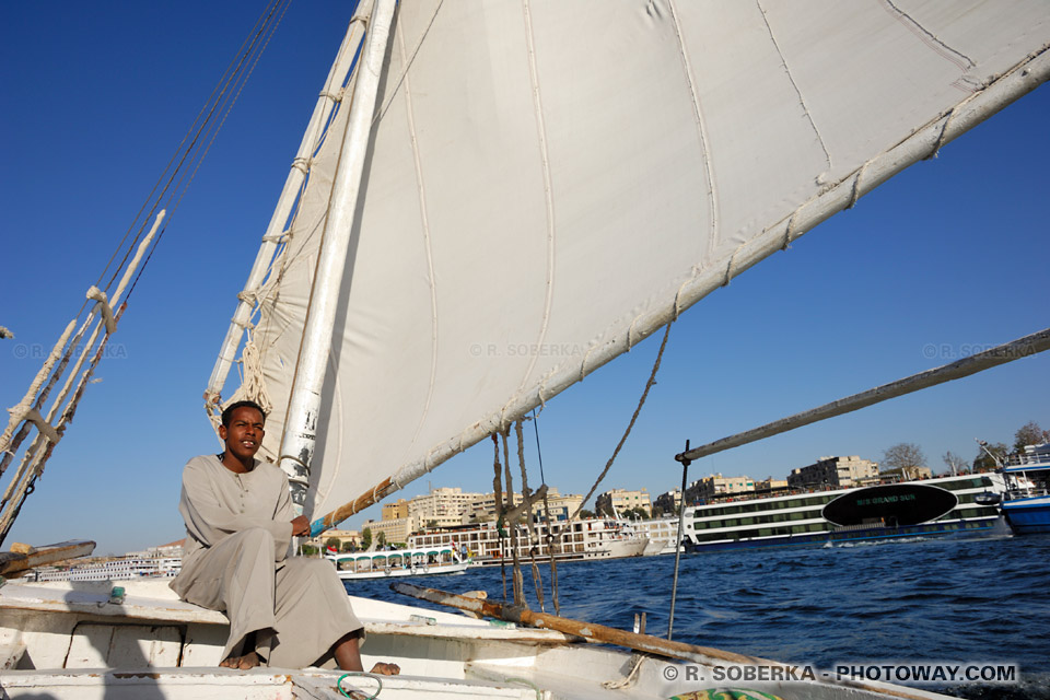 Les felouques sont de gracieuses embarcations égyptiennes traditionnelles, longues et étroites, que l’on croise fréquemment sur le le Nil, en particulier à Assouan.