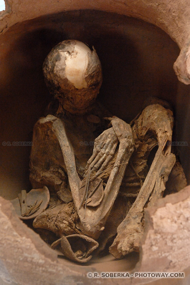 A côté, une momie à l'intérieur d'une urne funéraire, un rite particulier utilisé souvent pour les enfants.
